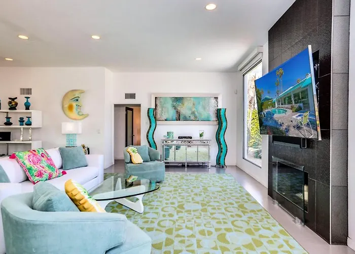 Smoke Tree Village Shopping Center is binnen 850 meter loopafstand gesitueerd. Palm Springs Timeless Beauty Permit# 4240 Villa bevindt zich ook binnen een paar straten van de Deepwell Estates. Deze 4-badkamer villa is op korte rijafstand van 10 minuten van het Robolights gesitueerd.